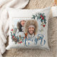 New Year Winter Photo in Blue Style Throw Pillow. Insert your photos and edit text simply and easily. A beautiful winter illustration and wishes a happy create a great mood before the upcoming New Year holiday. It will be a great and cute gift for New Year and Christmas. Congratulate your friends and loved ones with wishes for happiness during the winter Happy holidays!