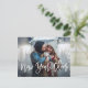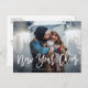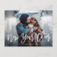 Send New Year's wishes to family and friends. This elegant design features white brush script and a lovely photo. The text and colors can be personalized.