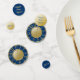 Confetti for the New Years Clock Countdown Collection. The large piece features an old-style brass clock that has weathered over the years. A royal blue background sets off the clock’s brilliant numbers. The mid-size piece says Happy New Years, and the small piece bears the year. The front of the medium and small piece is dark blue, and the back is gold for contrast. The vibrant colors evoke the romance of the night and invite your guests to dress their best. Get ready for the clock’s hands to strike twelve!