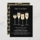 Celebrate and ring in the new year with this champagne glass, classy and elegant black New Year's Eve party invitation.