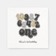 New Years Eve countdown in gold, silver and black first birthday napkins.