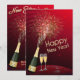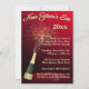 Ring in the New Year in style with this red and gold Happy New Year! invitation with a champagne bottle bursting open with fireworks and gold text, along with two champagne glasses, sitting on a disco ball base and striped streams of lighter red with stars on it. The design is carried over to the back, where you can customize the details with your own information. If you need any help, or if you need any matching items, please email niteowlstudio@gmail.com.