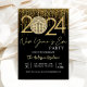 New Year's Eve Party 2024 Gold Glitter Disco Ball Invitation