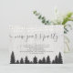 Calligraphy, rustic wood, romantic lights, tree silhouettes, and falling snow capture the beauty of the season for your occasion.