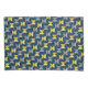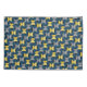 This pillowcase has a mid-century modern design of ovals in navy with semi-circles in shades of yellow and shades of gray in them on a field of black.