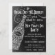 Break Out the Bubbly - New Year's Eve Party Invitation in Black & White. Pretty lacy style champagne bottle decorated with love birds, grapes, and vines. Great for Engagement, New Years, or any Celebration. Customize this invitation with your own text. Original Illustration by pj_design.