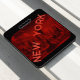 New York black and red stadium seat cushion featuring New York City's skyline. Custom text on the seat cushion. Change the text or leave as is. Great for games, stadiums, and more. Use the template to create your own New York stadium seat cushion.