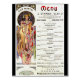 A vintage New York Café Menu with art nouveau designs. A woman wearing a high collar dress of colorful fabric prints. She holds a small tray in one hand and the other lifts the abundant train of her dress. Dinner is 25 cents extra without wine. From an original 20th century (1903) graphic design by Alfons Mucha. All Rights Reserved © 2015 padre art