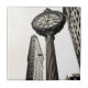 This fine art photo features the beautiful architecture of: the 5th Avenue Building Clock and the Flatiron Building. Standing at 19 feet high, this clock is made out of cast-iron and was constructed by a Brooklyn iron works company in 1909. This ornate, historic clock stands out in this black and white image. The Flatiron Building which is in the distance is one of Manhattan's most popular skyscrapers. Both the Fifth Avenue Building Clock and the Flatiron Building have landmark status. The classic feel of this image, with its vintage tones, gives it a timeless feel.