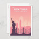 Anyone would love to receive this pink vintage travel poster postcard featuring a retro illustration of the New York City skyline, including the Statue of Liberty!
