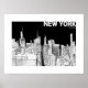 New York City Skyline Black White Sketch Mate Poster