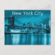 Experience New York City like never before. This post card features the NYC skyline from a Brooklyn vantage point. View the Brooklyn Bridge and skyscrapers with the Empire State Building in the background. I created this edit using blue tint, and a font displaying “New York City” in modern style cabin font. The back of the card is white and blank.