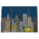 New York SWkyline and a Yellow Cab Taxi with a Christmas tree, hand painted watercolor.