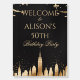 Welcome your party guests to a memorable birthday celebration with this chic New York City skyline welcome sign. The striking contrast of the black background and shimmering gold cityscape, accented with falling confetti, creates a sophisticated and celebratory atmosphere. This foam board is ideal for adding a touch of class and excitement to any milestone birthday party, particularly those with a New York theme or a desire for an elegant, art deco ambiance.