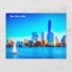 Beautiful vibrant colors postcard of the urban skyline of New York city during the daytime. The One Trade Center building is included. The area is a famous tourist attraction