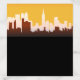 Sunrise in New York City with a golden sky in the morning behind a silhouette of the Empire State Building and other skyscrapers in midtown from a vantage point in Manhattan, over the East River in Brooklyn, Queens or Staten Island, and across the Hudson in New Jersey.