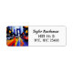 Personalized return address labels with colorful abstract NYC streets full of traffic and neon signs.