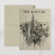 This travel postcard, in hand drawn sketch-style, showcases a sketch of the cityscape of New York City, USA.