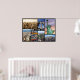 Travel poster of New York City - includes images of the cityscape, Chrysler Building, Empire State Building, Statue of Liberty, Yellow Cabs, and Central Park.