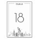 A unique wedding table number cards for a marriage taking place in the beautiful city of New York City, New York. It features a simplified table number resting above a stylized version of the famous city's unique skyline.