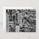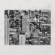 Postcard in a semi-abstract pattern of New York City from an aerial perspective, in shades of gray / grey, black and white
