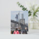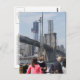 The Brooklyn Bridge, Freedom Tower, and tallest residential buildings in the Americas rise across the East River in Manhattan, distorted by the glass enclosure of the carousel located in DUMBO, Brooklyn.