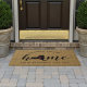 Show some home state pride with this custom doormat featuring "home" in calligraphy script lettering with a silhouette map of the state of New York standing in for the letter "O." A heart illustration inside the state map completes the design; you can change the position of the heart to your home city by opening the design tool and dragging the heart shape to your favorite spot. Personalize with your home city, family name and year established to create a perfect finishing touch for your front door, or a memorable housewarming gift.