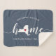 Show some home state pride with this cute rustic blue throw blanket featuring "home" in white calligraphy script lettering with a silhouette map of the state of New York standing in for the letter "O." A red heart illustration inside the state map completes the design; you can change the position of the heart to your home city by opening the design tool and dragging the heart shape to your favorite spot. Personalize with your home city, family name and year established to create a perfect and memorable housewarming gift or addition to your new home.