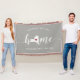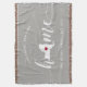 Show some home state pride with this cute rustic gray throw blanket featuring "home" in white calligraphy script lettering with a silhouette map of the state of New York standing in for the letter "O." A red heart illustration inside the state map completes the design; you can change the position of the heart to your home city by opening the design tool and dragging the heart shape to your favorite spot. Personalize with your home city, family name and year established to create a perfect and memorable housewarming gift or addition to your new home.
