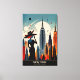 Experience the excitement of "New York: Land of Endless Possibilities" with this striking travel canvas print! This captivating canvas print showcases a silhouetted woman in a stylish hat, set against a retro-futuristic skyline filled with iconic skyscrapers. A large moon and celestial bodies add a cosmic flair, enhancing the scene's allure. With the tagline "New York: Land of Endless Possibilities," this artwork beautifully captures the essence of adventure and opportunity that defines the Empire State, inviting dreamers to explore its boundless horizons.