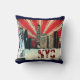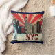 new york retro throw pillow in red white and blue. Background color is customizable - simply click CUSTOMIZE IT>EDIT>BACKGROUND and choose your own color to suit your room's furnishings and accessories. WIth the retro ray pattern, new york city buildings and the statue of liberty add an american touch to your sofa and home decor. .