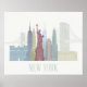 New York Skyline by Fab Funky. Features a collection of famous landmarks of New York City in muted colors.