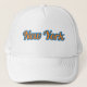 This custom trucker hat features a design that displays the word "New York" in a Lobster print font with orange colored letters blue outline in this custom state pride jersey style theme. This hat is comfortable, casual and adjustable from 17 to 24" with a 100% nylon foam front and nylon mesh back great for everyday use or any special occasion.