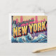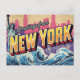 New York Statue Wave Skyline Postcard