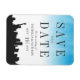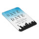 A custom set of save the date stamps to move to New York with a custom set of save the date magnets tailored to the New York wedding.