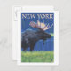 New York - Moose in the Moonlight - LP Original Poster - was created in 2008. This image depicts scenes from New York.