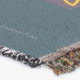 A quality printed throw has its advantages. This is a much finer weave throw than its loopier cousins, and though lighter, it is worth the investment for custom room accessorizing. The back is much prettier than the typical brown, and the fringe on the long sides very vivid, the selvage nicely done. Before photographing, I washed the throw in cold water, delicate, with a thicker woven throw the same size. On tumble dry low, this throw was dry in half the time as the other. This is a very practical quality if you use throws for furniture covers or to wrap up in frequently. The sleekness of the fabric makes it a great layer for accenting or protecting without the feeling of sitting on too much stuff. Perfect for napping or when you feel a light chill coming on. The color printing is beautiful and on this fabric, matched the design and color of my Photoshop image. This is an advantage for blending room fabrics and colors. The fringe on the short sides prints the colors from the design image and therefore varies from the side fringe. I streaked a white fractal line through the plaid pattern to give the illusion of weaving. This printed as crisp as an illusory thread, and put some white in the short side fringe, showing another advantage of print vs loomed- for artistic purposes, line lines, detail, and color integrity can be planned and preserved. My loomed throws have color limitations and more of a needlepoint texture. Print throws reproduce an exact image. The throw felt a little stiff straight out of the package, but this went away in the first delicate wash. Of course I searched the wash water for ink or bleeding and there was none.