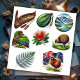 New Zealand Kiwiana Set 3 Sticker. © Pick a Sticker. This sheet of 8 stickers are all of New Zealand Kiwiana which include stylised pictures of a fern frond, a greenstone Maori weapon, a Kia bird, a Kiwi bird, a Pohutukawa flower, a kiwi bird with a NZ flag, Maori canoe and a wee mountain river scene.