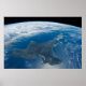 January 2, 2022 - View from space of New Zealand''s North Island that separates the Tasman Sea from the South Pacific Ocean. On the other side of Cook Strait, South Island peeks out from beneath the cloud cover. Seven bays surround the North Island and define its distinctive shape. The inland landscape includes grasslands (lighter green areas), forests (darker green areas), volcanic plateaus, and mountain ranges formed from sedimentary rocks. In the center of the island, Lake Taupo, a crater lake inside a caldera formed by a supervolcanic eruption, borders the island's highest peak, the active volcano Mount Ruapehu. The volcanic nature of the island arises from its location on the tectonic plate boundary between the Indo-Australian and Pacific Plates. This plate boundary is part of the vast Pacific Ring of Fire, and leads to significant geothermal activity and earthquakes in the region. Additional volcanoes, including Mount Taranaki (Egmont Volcano), also dot the North Island landscape.