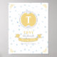 Personalized baby keepsake with monogram and birth details in soft blue and yellow on star background, a special custom keepsake gifts.
