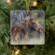 Newborn Moose Calf Nuzzling its Mother Ceramic Ornament