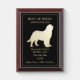 A gold silhouette of a Newfoundland dog on a dramatic black background is the center of this dog show award plaque. Your custom text is in gold in six easy to customize fields above and below the image. Easily change this to the appropriate class award. And, if the award is ordered after the show as a tribute to your own dog, you can replace the judge's name on the last line with the dog's registered name.