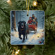 Newfoundland Dog Snowy Sleigh Ride Christmas Ceramic Ornament
