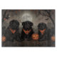 Unleash the spooky spirit with this eerie Halloween design featuring a pack of dogs under a dark, moonlit sky, surrounded by flying bats and glowing pumpkins. Perfect for those who love a touch of frightful fun with their furry friends!