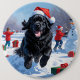 A majestic Newfoundland Dog runs through the snowy landscape, playfully wearing a festive red Christmas hat. The scene captures the gentle giant’s strength, loyalty, and charm while reflecting the joy and warmth of the holiday season. A heartwarming winter moment full of festive spirit.