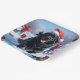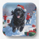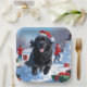 Newfoundland Running in Snow with Christmas Hat Paper Plates