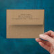 A handsome cream return address envelope with the newlyweds name in a pretty cafe au lait brown color with a unique Gatsby era vintage typography. A stand out style for your newlywed wedding mailing materials.