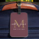 Chic, modern and simple monogrammed luggage tag with the text Mr and Mrs in white elegant handwritten script calligraphy on a burgundy background with your monogram in gold. Simply add your married name, year established and monogram in stylish typography. Perfect luxury gift for the newlywed couple's wedding guests. Exclusively designed for you by Happy Dolphin Studio. If you need any help or matching products please contact us at happydolphinstudio@outlook.com. We're happy to help you make your wedding the most beautiful day!