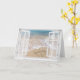 Newlywed names in beach sand hearts card