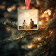"Just Married" pewter ornament for newly weds. Click "Customize It" to move elements, add or change fonts, colors size and location. You can also remove the gray date below the white that is acting as a drop shadow for legibility.
